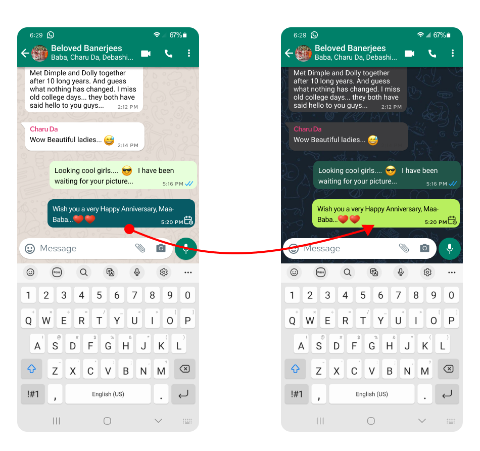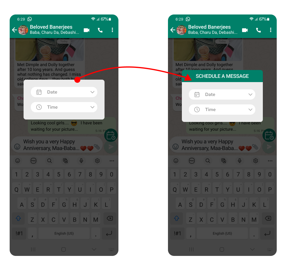 Busy users could use this feature to schedule birthday and anniversary messages to be sent at the appropriate times. It can also be used as reminders to inform that the message will be sent, option to have this feature turn on and off.